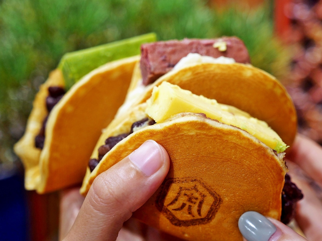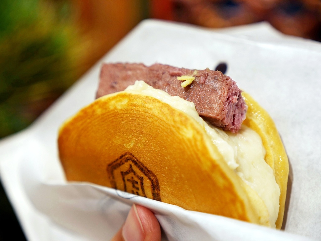 現點現做的虎月燒有點像是銅鑼燒,配上飽滿夾餡和一整條乳酪,大口咬下特別有料。