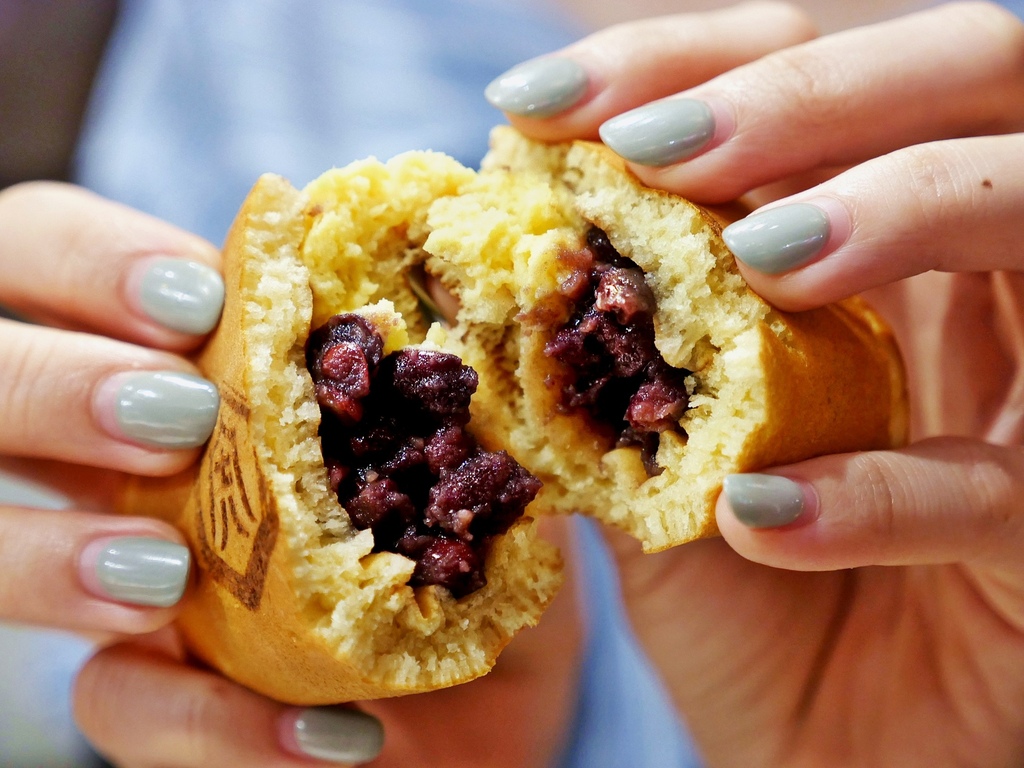 不要看虎月燒這樣拿著看似不大份,中間夾了厚厚的內餡,一個當成下午茶綽綽有餘。
