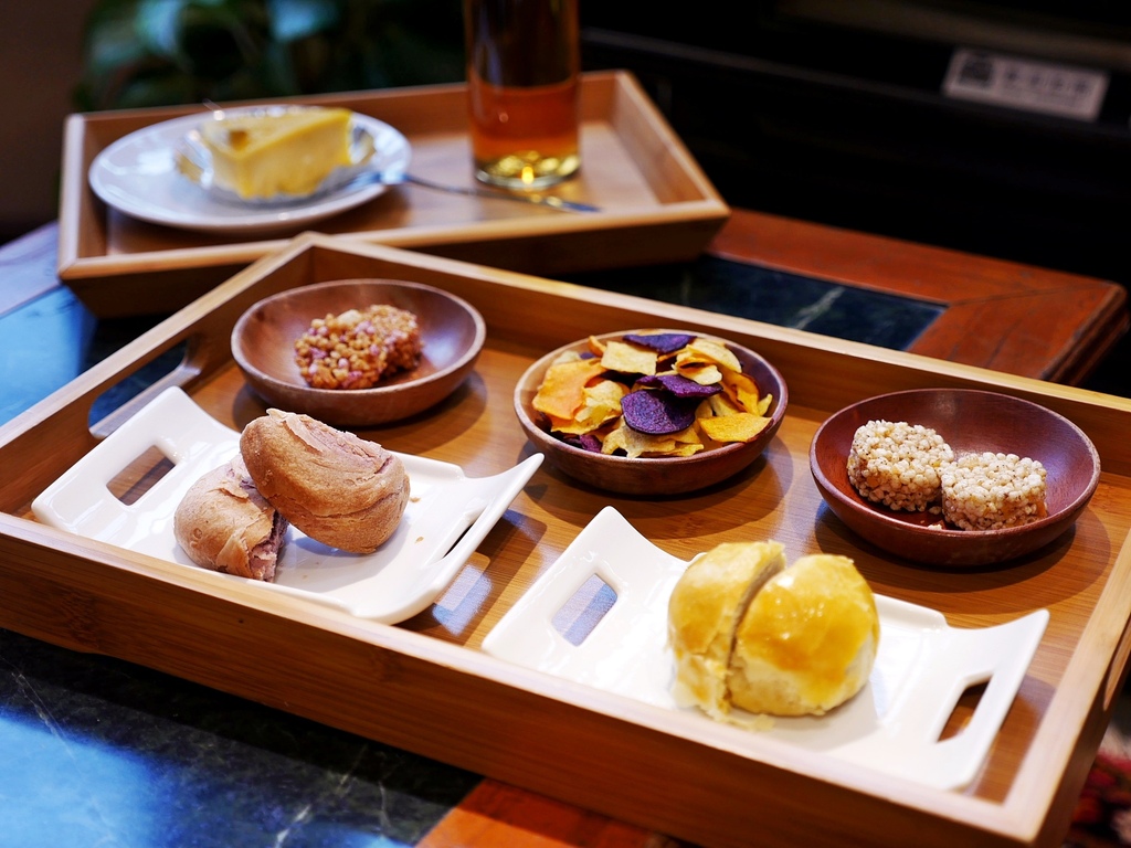 一踏進店裡,店員就熱情遞上乳酪蛋糕和茶飲讓我們試吃。品嘗完香濃的地瓜乳酪蛋糕再來一口好茶,是駐足小憩的良伴。