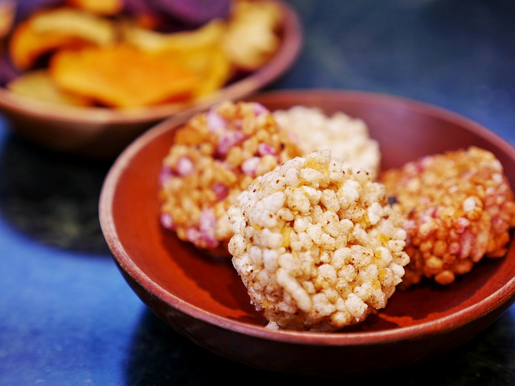 米薯球以地瓜結合台灣八目米,讓小碎米華麗變身為沒負擔的零食。兩種口味包含鹹甜滋味帶點醬油香的的醬香豆腐乳,以及甘梅薯條。甘梅薯條也是鹹甜口味,不只是也是那種甘梅薯條的香氣,米香也很鮮明,兩款都很好吃。