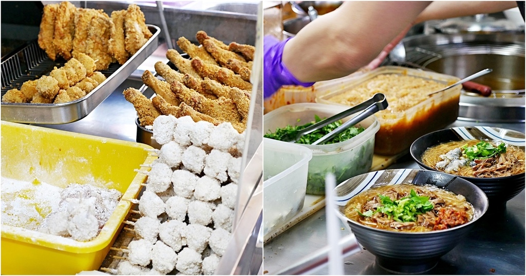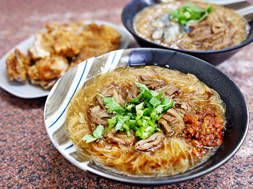 麵線與雞排的組合人氣很高,一點也不輸給尬臭豆腐,雖然有點罪惡但來一套很過癮。台中 客拉客蚵仔麵線店 是北屯小有名氣的麵線糊,勾芡適中不會太稠,搭配上古早味湯頭以及滷到入味的大腸頭味道很不錯。熱騰騰出鍋的金黃炸雞排、雞腿以及花枝丸,放進麵線內一起享用,吸飽麵線湯味道更加分。
