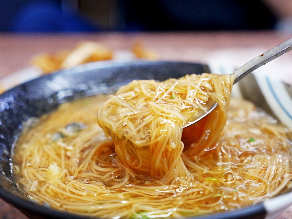 麵線微稠不膩口,湯頭很古早味,搭配濃郁蒜香很好吃。麵量不算非常多但每一口都很平均,不會吃到後面只剩下湯,表現還不賴。