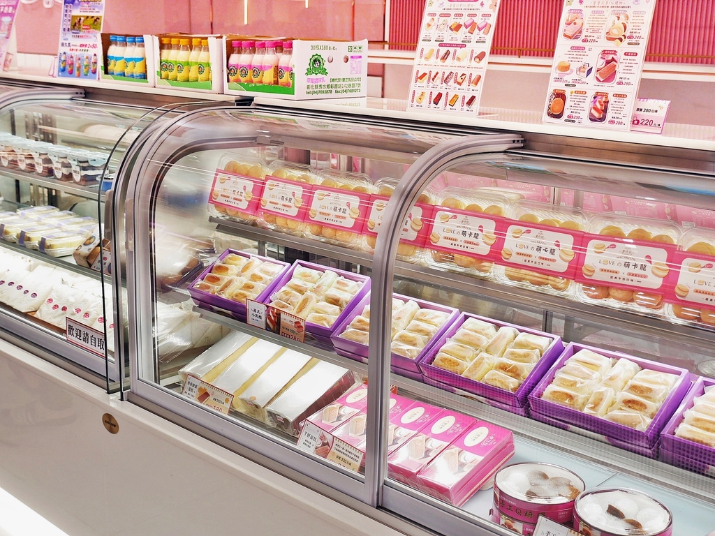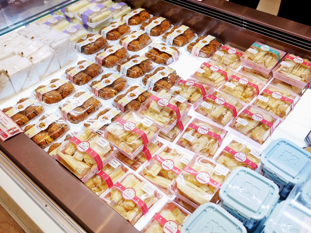 除了裸裝麵包櫃很吸睛,店裡也增設不少冷藏櫥窗。麥仕佳有很多產品都是冰過更好吃,像是芋泥雪貝、三明治等等,甚至有只要50元的NG千層蛋糕。超大空間的冷藏櫃擺滿滿,想要幾盒自己拿超方便。