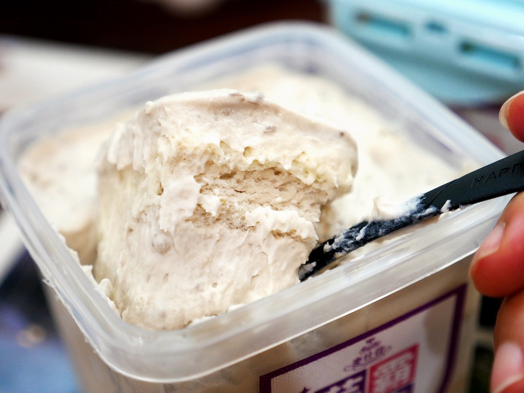 把 芋霸不能 倒出來給大家瞧瞧,芋泥餡厚厚一層給得不手軟,現烤芋頭純手工製作,高品質把關難怪這麼濃醇香。綿密芋泥散發自然芋頭香氣,結合牛奶的濃郁口感,每一口都好滿足。