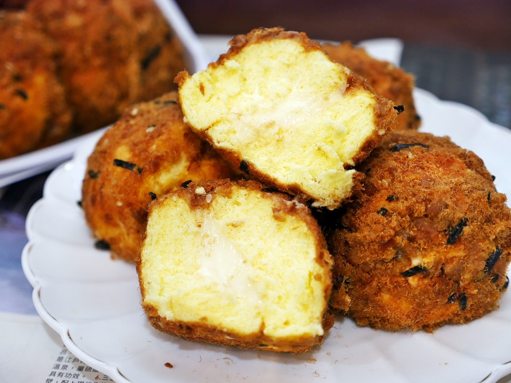 之前吃過肉鬆小貝和芋泥雪貝就愛上,瞬間把排名大洗牌。外頭滾滿海苔芝麻肉鬆的小圓球很有份量,咬開才知道裡面藏著小驚喜。
