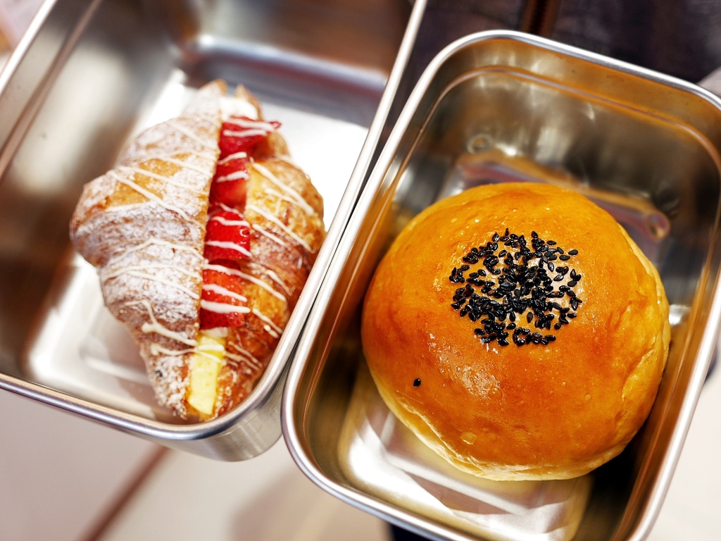 身為不塑之客,裸裝麵包特別有吸引力。靜香昨天去就自備餐盒買麵包,草莓可頌和紅豆麵包完全不怕壓到,順利帶回家享用。