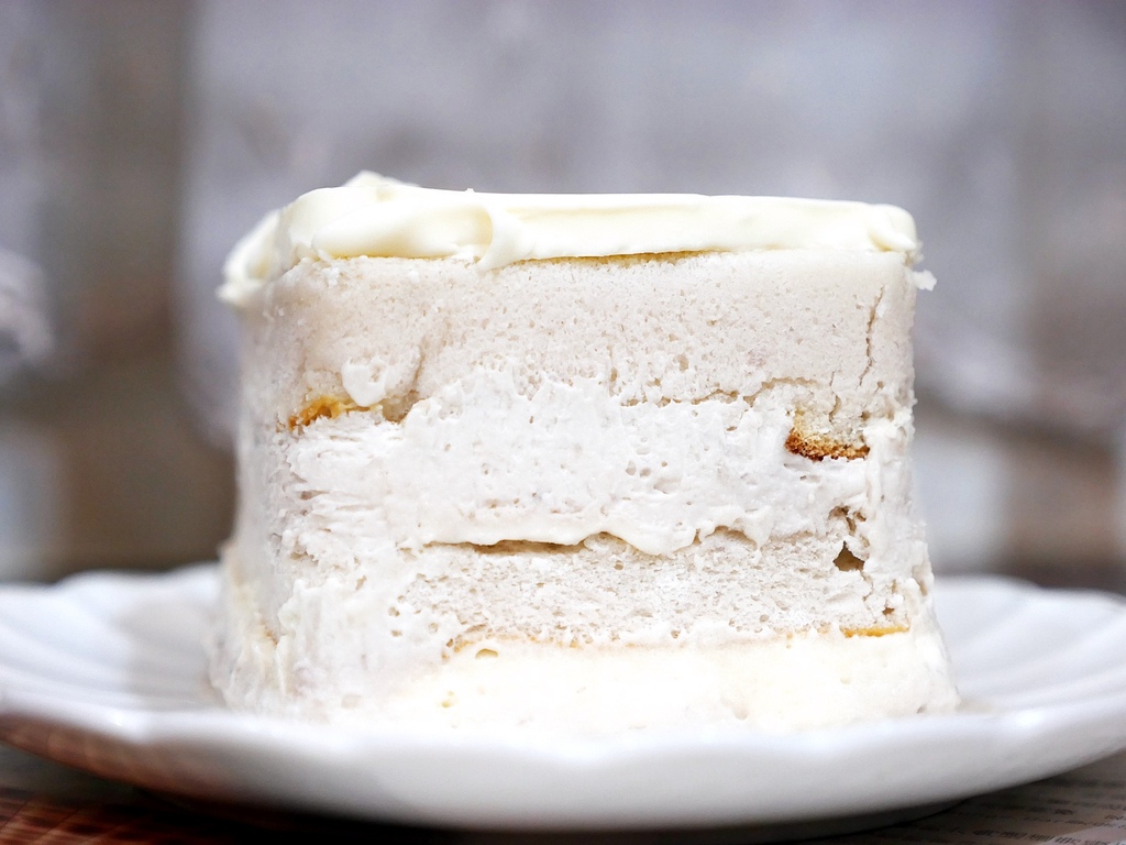 芋頭奶酪蛋糕以多層次著稱,由上而下大匙挖掘共有六大層,兩層綿密芋泥、兩層蓬鬆日式蛋糕,還有一層卡士達跟奶酪。