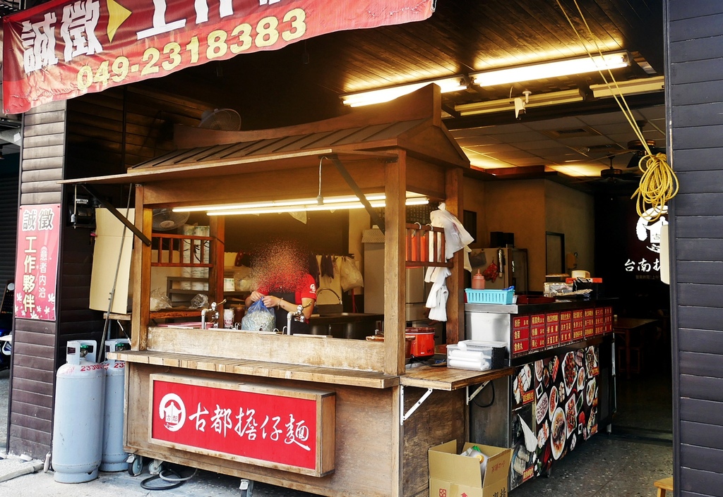 古都台南擔仔麵 位在草屯碧山路上,復古的木造店面透出濃濃古早味,用餐空間還不小,尖峰時間總是滿座。