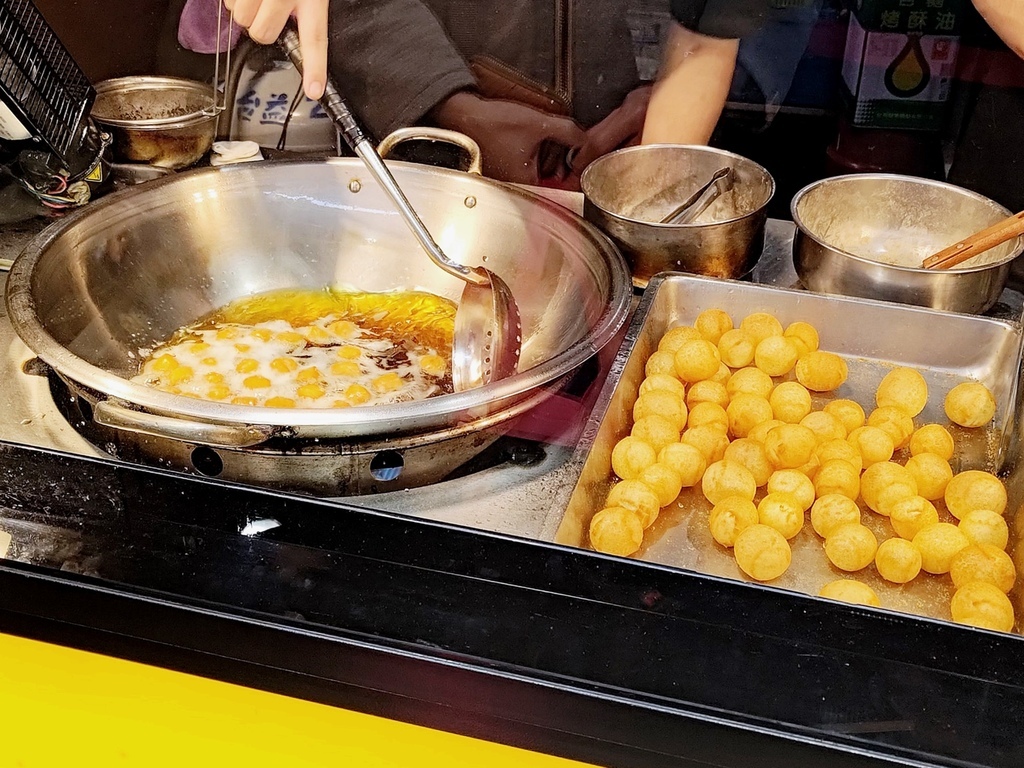 薄皮脆口的地瓜球還挺有嚼勁,但又不會太韌或乾硬,地瓜香氣鮮明且甜度適中,真的會想一顆接一顆,是很涮嘴的散步點心,有機會到忠孝夜市一定要試試。
