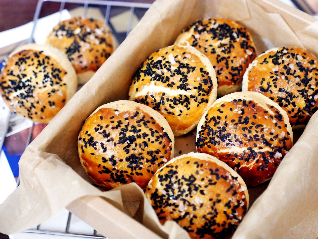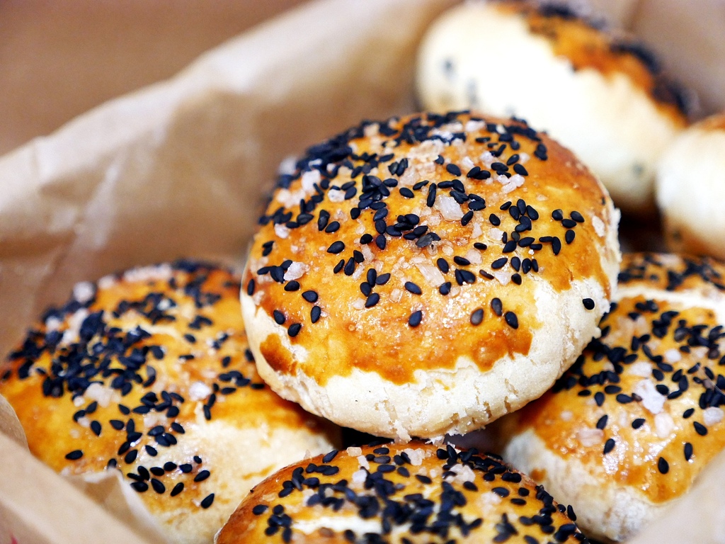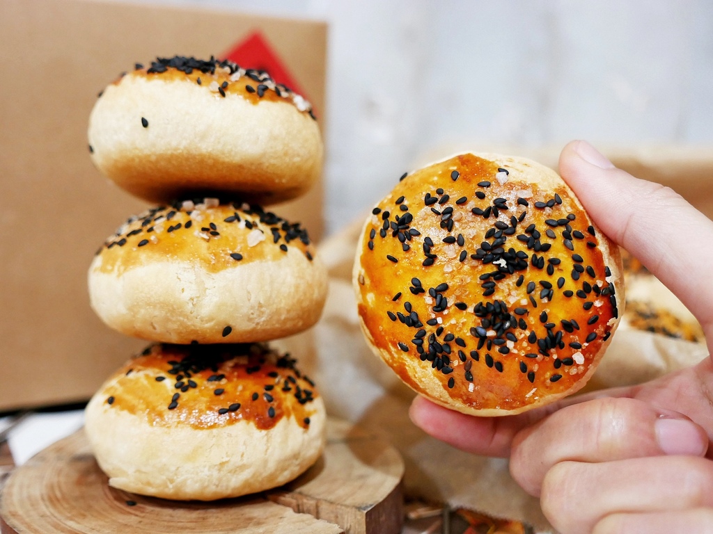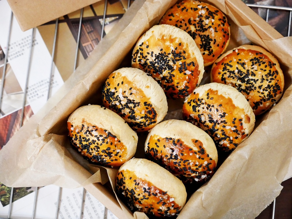 目前甜燒餅大約一週一團,可以到店家粉專確認最新的開團時間。甜燒餅一盒內有8塊,金黃的表面綴滿大量黑芝麻,細看還有些許鹽之花。