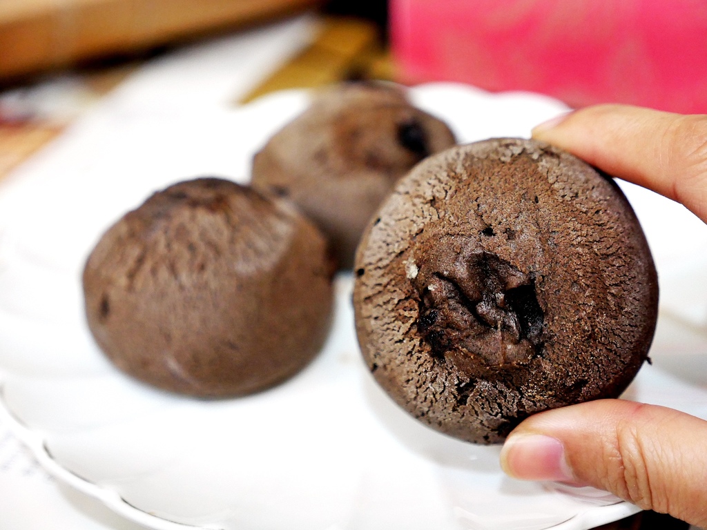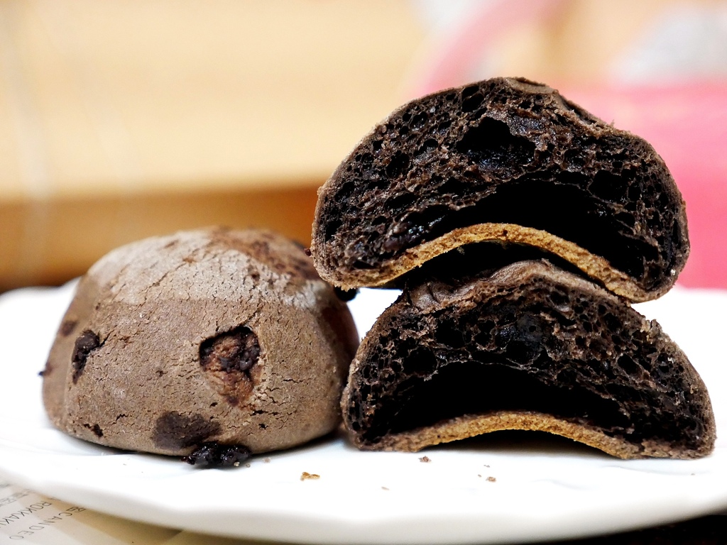 朱古力烤麻糬一包有4顆,圓滾滾又黑嚕嚕的麻糬麵包點綴不少水滴巧克力,澎綿不失嚼勁的口感我個人蠻喜歡。麵包本身就帶點巧克力香氣,咬到水滴巧克力的時候香氣更加鮮明,不甜膩特別涮嘴,不嗜甜的朋友應該也會喜歡。