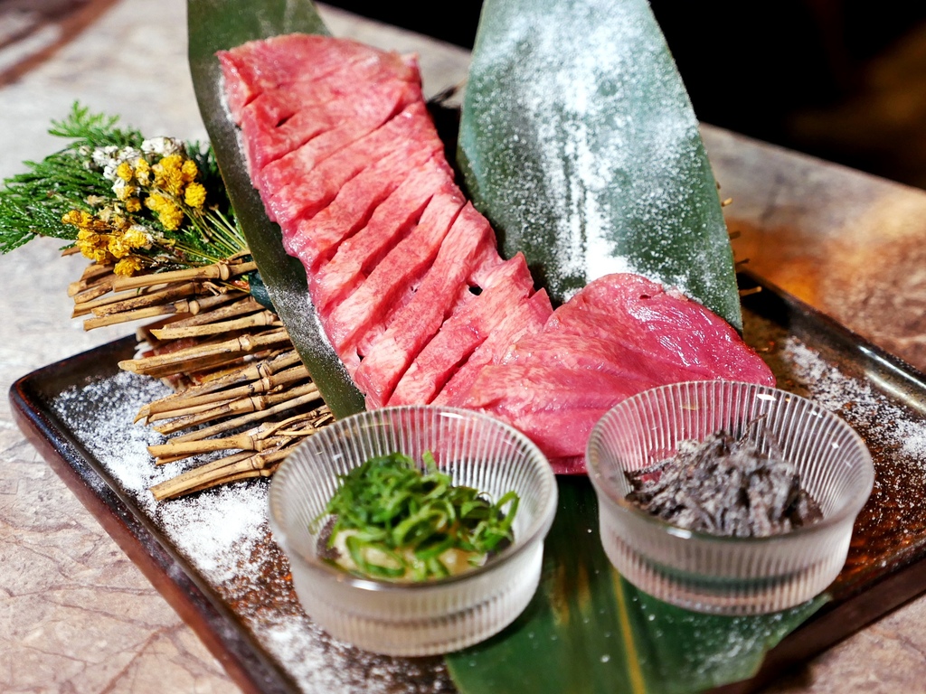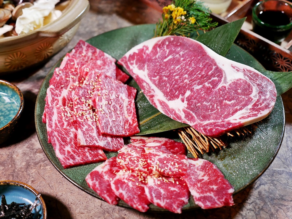 這款套餐的主食是Prime等級霜降牛、牛小排和肋眼,分布均勻的油花讓每塊肉都透出誘人色澤。牛肉沒有額外調味,最能品嚐出此等級牛肉的鮮甜和細緻口感。