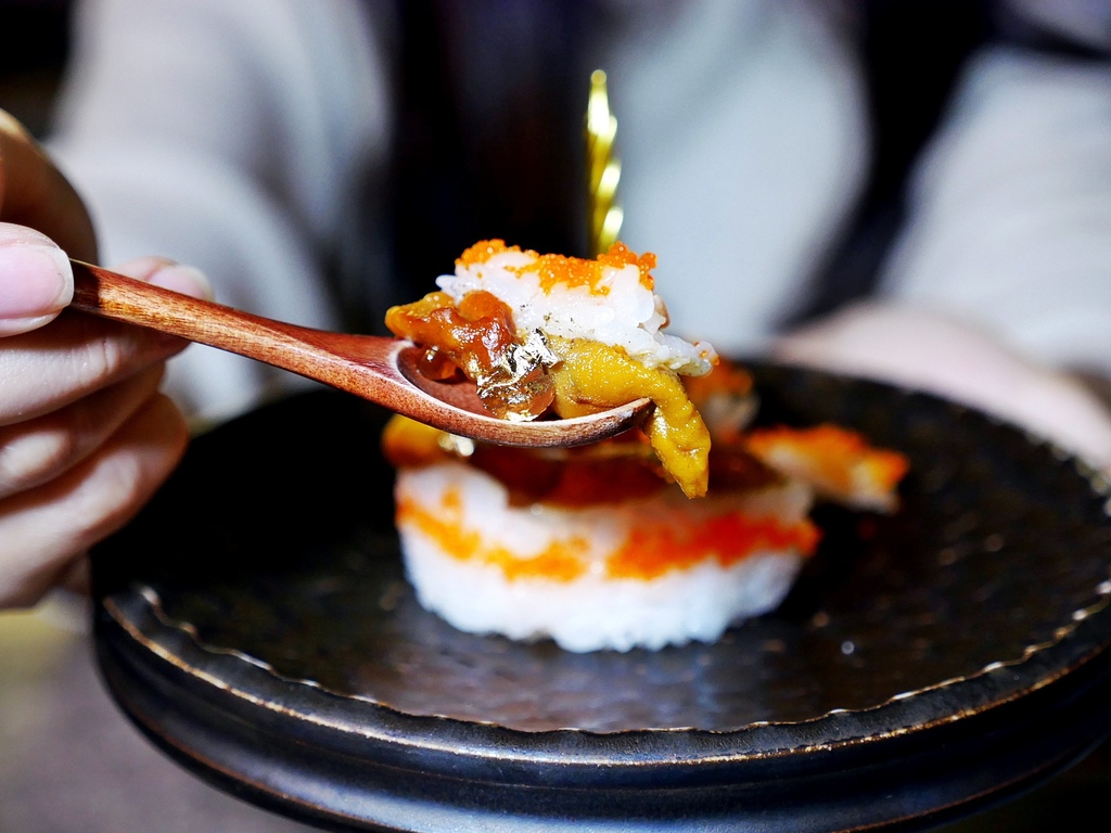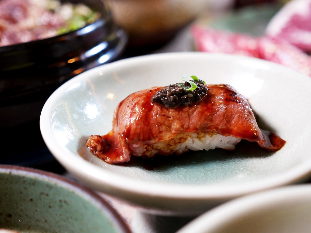 松露控必嘗! 握壽司上頭的牛肉薄厚度掌握得恰到好處,經過炙燒跟醬汁及松露香氣完美結合,不過醬汁略甜口,如果甜度稍降一些就更完美了。