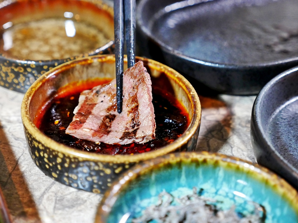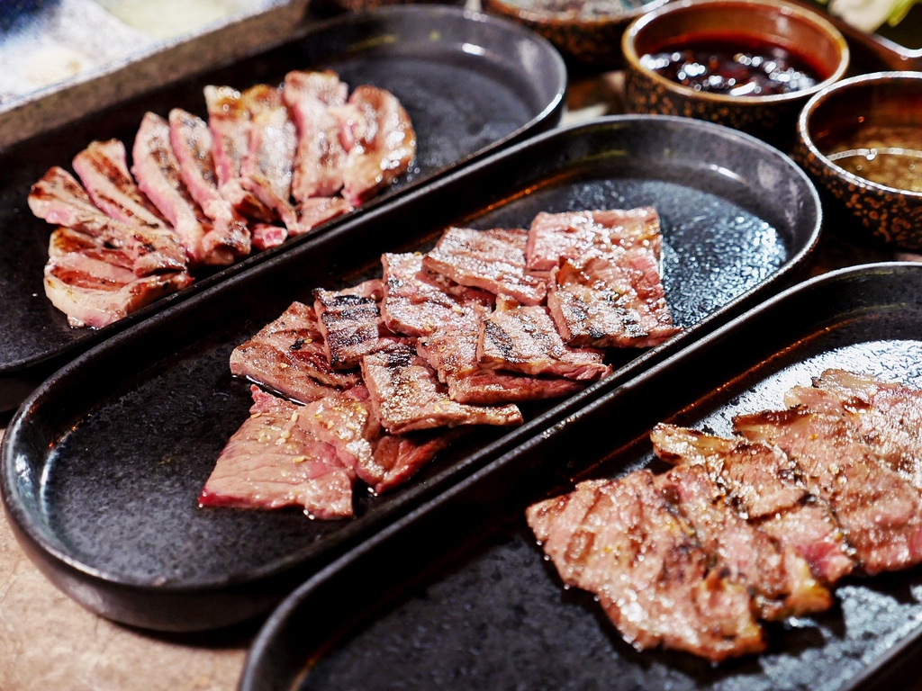 霜降、牛小排跟肋眼的熟度都掌握得剛剛好,不只口感軟嫩好咬,每塊牛肉還飽含鮮甜肉汁,不用沾醬就很厲害。肋眼跟霜降都很鮮嫩多汁,而牛小排軟嫩中不失嚼勁,火烤香氣最為鮮明也好吃。