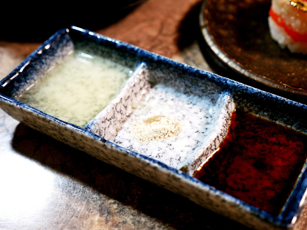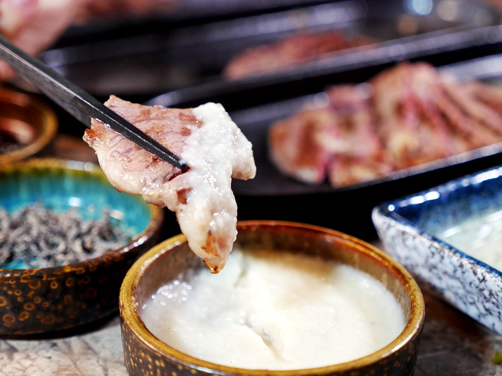 鮮甜的牛舌單吃就很出色,夾著旁邊搭配的鹽蔥或昆布鹽一起品嘗別有風味喔。