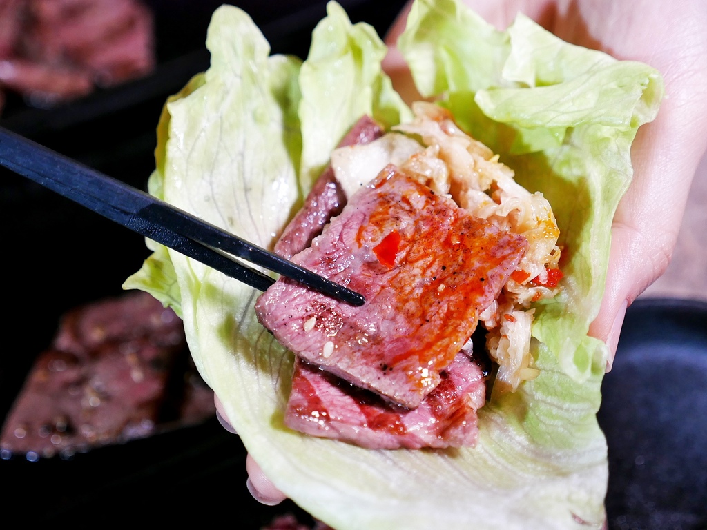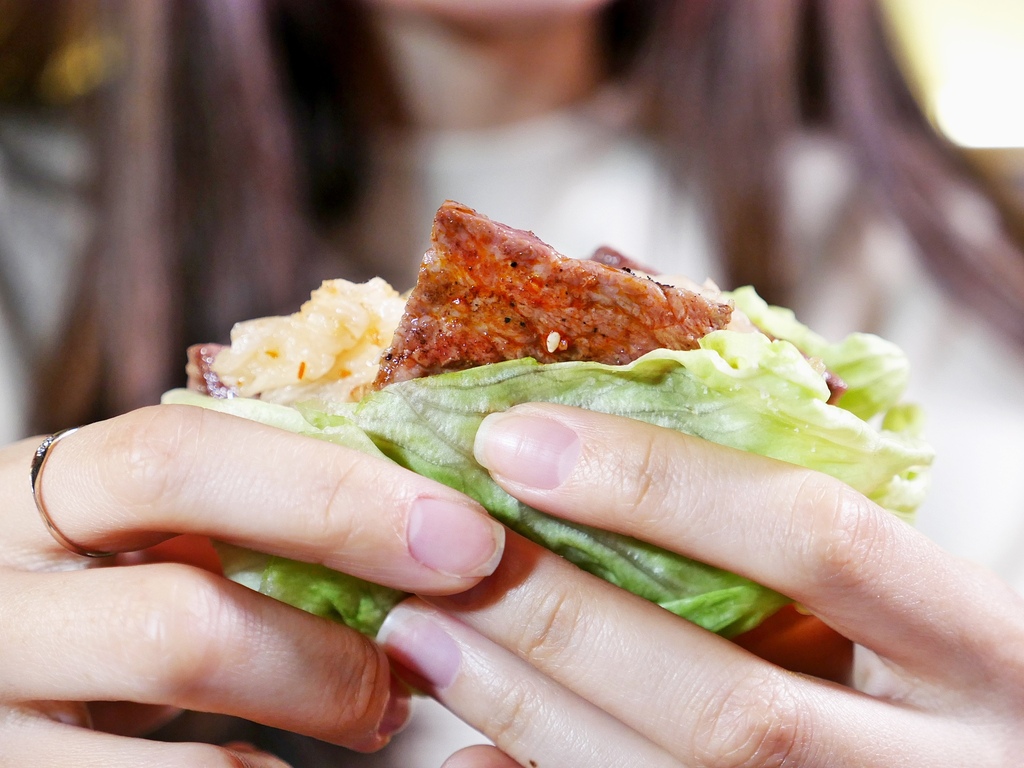 搭配生菜的吃法有點韓,但口味上更有層次,夾點泡菜、醬汁一起享用味道真不錯。