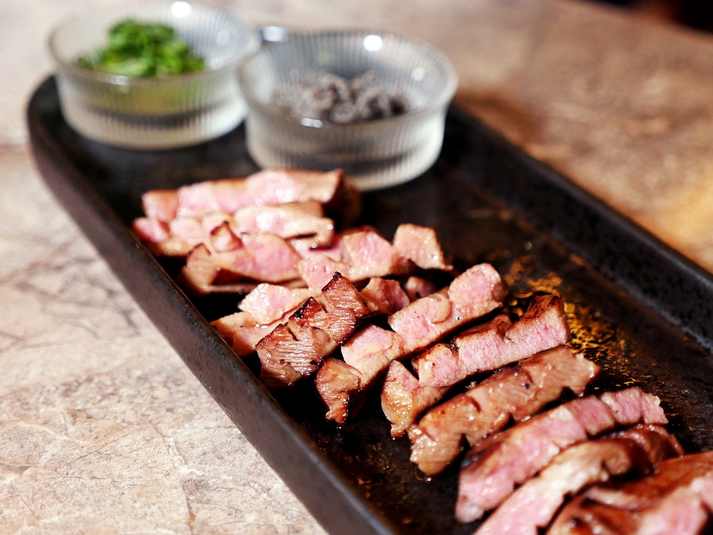 幻切牛舌上烤架的霸氣感不輸跟臉一樣大的肋眼,切剪的剖面透出粉嫩色澤,軟嫩口感中帶點脆度,連牙口不好的長輩也能輕鬆享用。