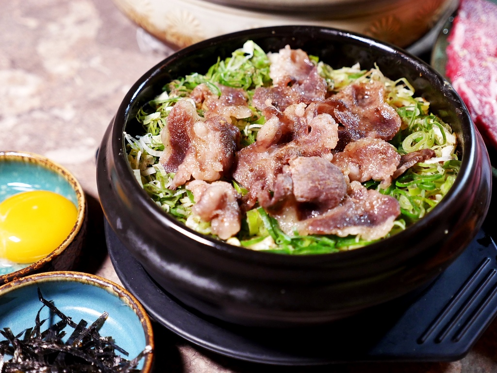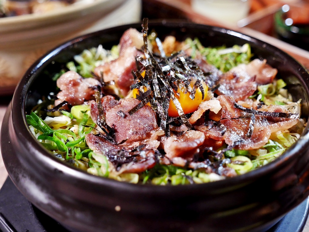 套餐的米食是搭配兩碗台東池上一等米,但強烈推薦加價更換成舖滿青蔥、伊比利豬肉片的拌飯! 這款拌飯把正在減澱粉的我給擄獲,害我破戒吃了一大碗