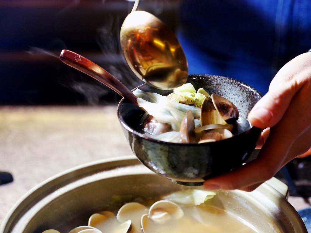 加熱過後蛤蜊釋出的精華湯汁加上高麗菜特別鮮甜,裡頭似乎加了點清酒,清爽中帶點酒香更有層次感,大鍋份量多人分食也不嫌少。