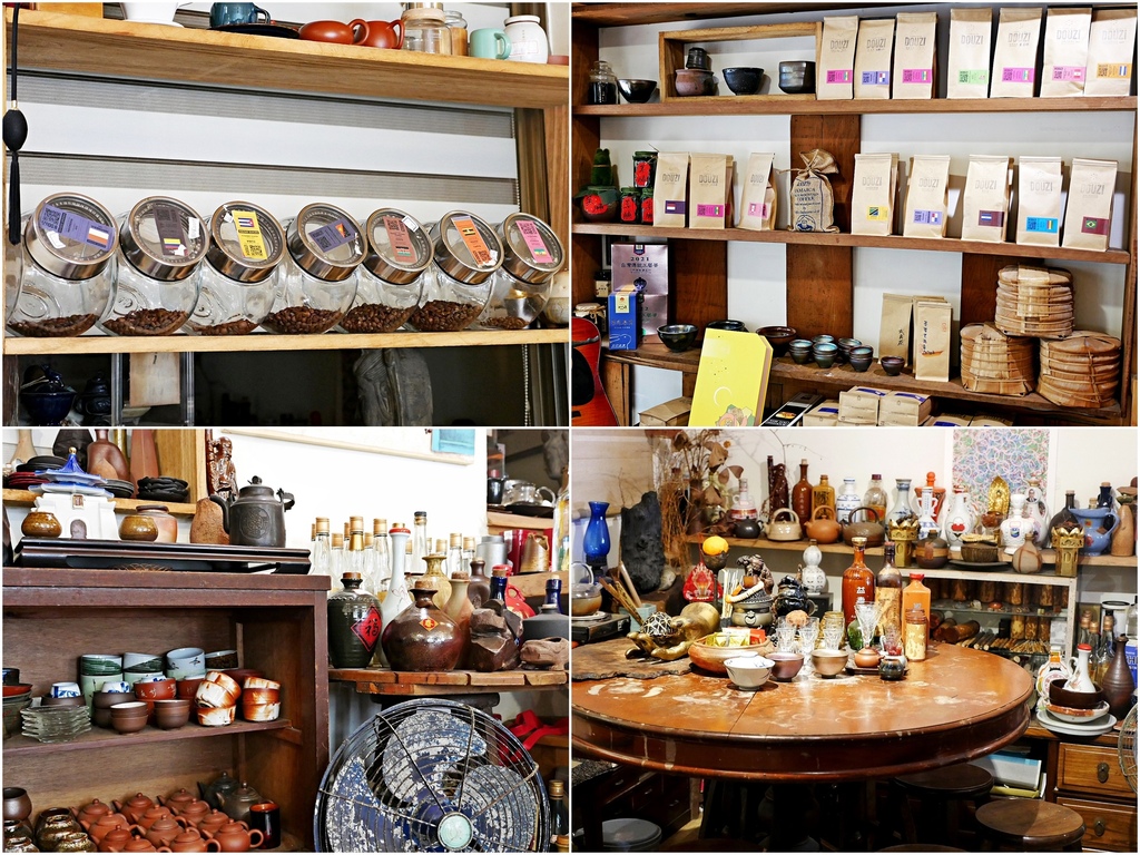 除了門口懷舊感十足,店面也陳列各式古物,讓人一走進去就有種穿越時空的錯覺。店內有一大張桌子跟一小張玻璃桌,往裡面走也還有另一張座位,我們直接在大張桌子落坐,所以不確定其他座位是否也是提供給顧客使用的。