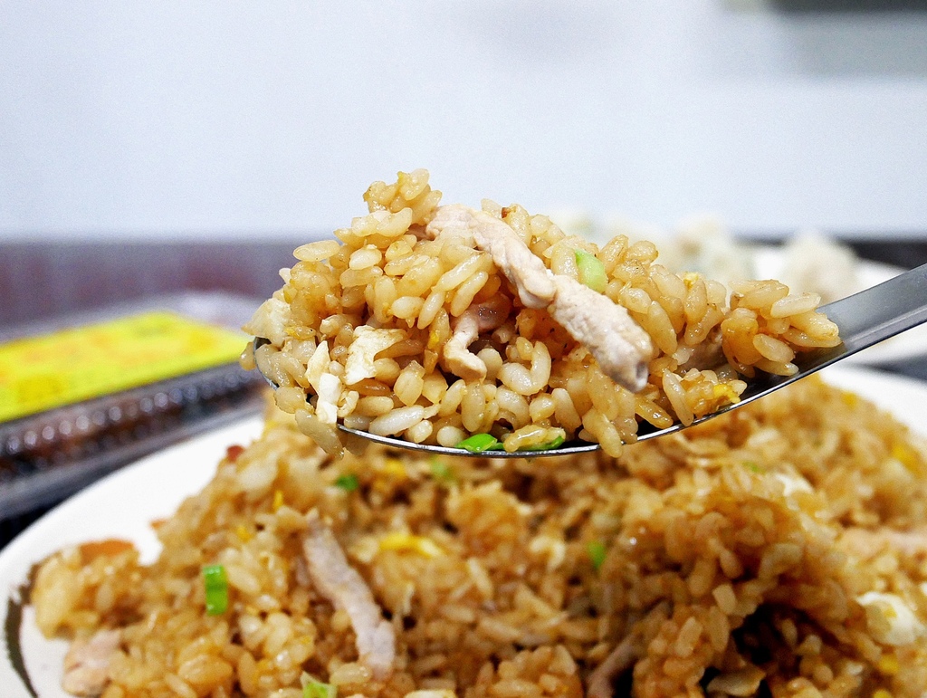 大盤炒飯超有份量,飯的米粒完全不會太濕軟,飽滿且粒粒分明。米飯吸飽其餘食材的香氣,每一口都很有味道,重點是完全不油膩,肉絲也不會乾超好吃。