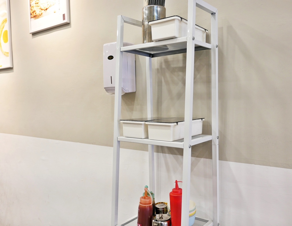 餐具、醬料通通讓顧客自行取用,離開前也別忘了將餐盤和廚餘放置到廚房外的架子上。