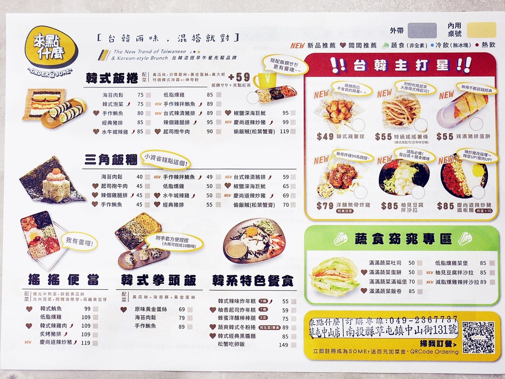 來點什麼早午餐 是一家提供台韓混搭餐點的特色早午餐,之前在科博館附近首次嘗鮮 : 食記這邊看,被它家的韓式炸雞驚艷到,認真覺得口味不會輸給韓式炸雞專賣店的水準。前陣子草屯展了外縣市首家門市,讓喜歡韓式料理的朋友,早餐多了新選擇,想吃韓食不用等下班,一早就能開動。