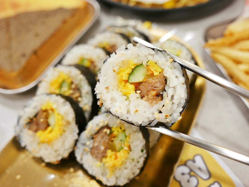 一早就能吃到飯捲讓早餐多了另一種風格的選擇,飯捲的份量還不小,可以選擇要不要刷上辣醬相當客製化,對於帶小朋友一起來用餐的家長,也能放心給小朋友享用。雖說沒有刷醬但也完全不乾,中間的配料就夠濕潤。