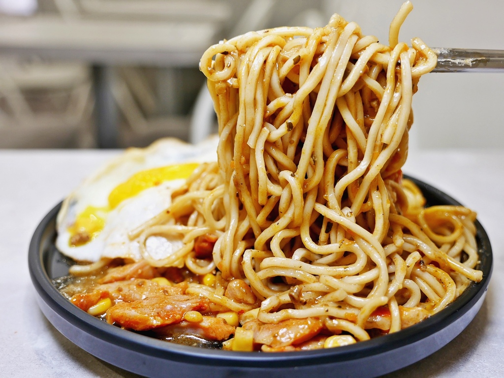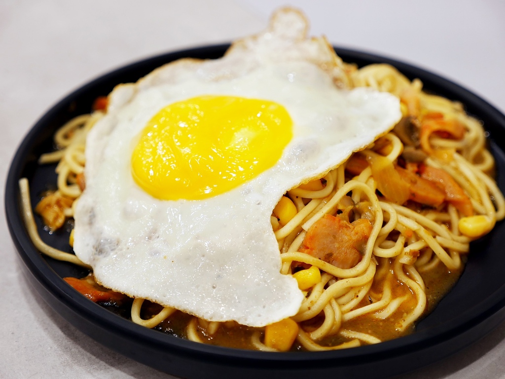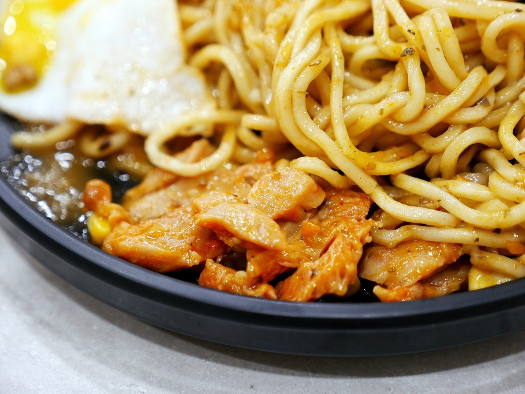 水牛城辣雞鐵板麵(蘑)$75 加 半熟蛋$10