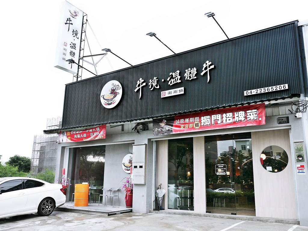 牛境溫體牛火鍋 位在台中北屯的崇德十路二段上,附近較知名的地標當屬衛道高中和馬禮遜美國學校。店門口保留寬敞的停車空間,對於開車來用餐的朋友相當友善。
